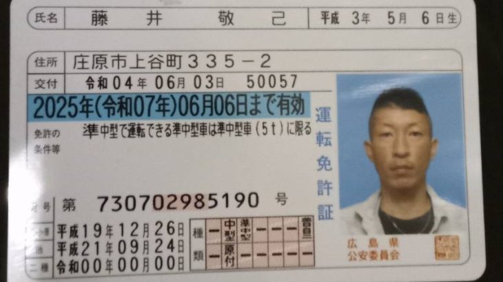 広島悪質詐欺師 藤井敬己 フジイタカミ ふじいたかみ ◆運転免許証 ・氏名 藤井敬己 フジイタカミ ふじいたかみ ・生年月日 平成3年5月6日生 ・住所 広島県庄原市上谷町335-2 ・交付 令和04年06月03日 ・ […]