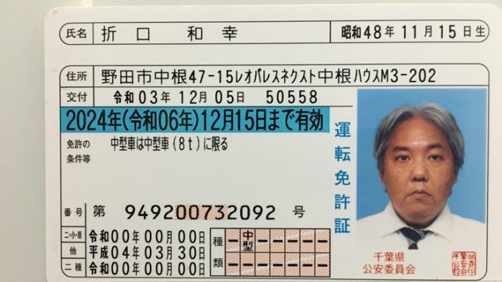 ■氏名 下山潤 シモヤマジュン ■携帯番号 08062467513 ■生年月日 昭和59 年12 月16日生 派遣先:SUBARU 8225-724 勤務元:日総工産株式会社 第1トリム課 ■運転免許証 交付 令和04年01月16日 041 […]