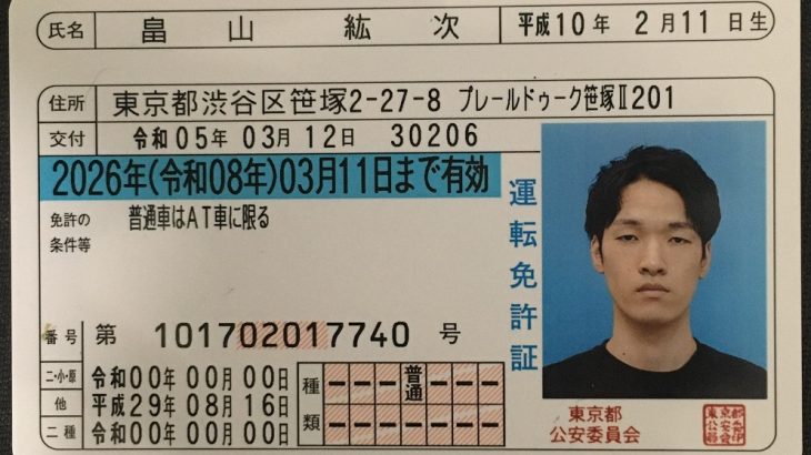 氏名 菊地涉維 キクチショウイ 住所 神奈川県藤沢市善行坂1-1-36-101 生年月日 平成4年 2月23日生(西暦1992年2月23日生)31歳 電話番号 090-6495-7646 050-3574-6294 免許証 交付 令和03年 […]