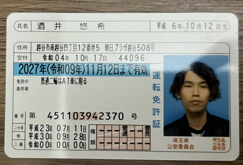 氏名 酒井 悠希 サカイユウキ