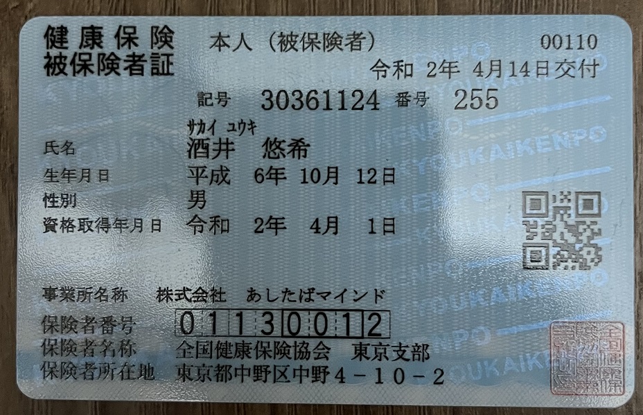 健康保険被保険者証本人(被保険者)