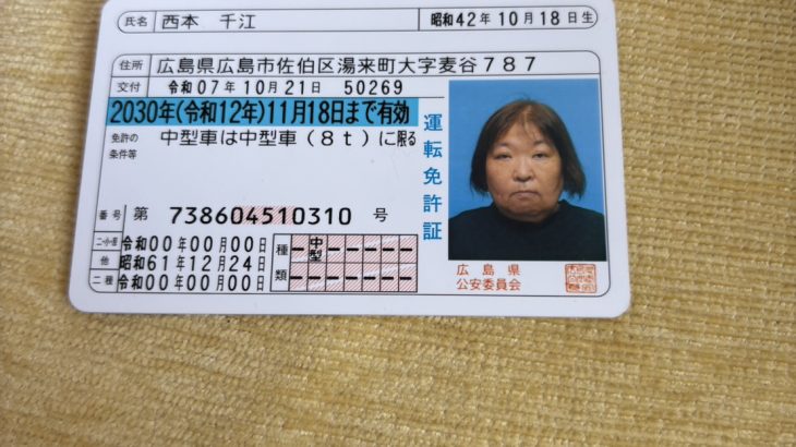 なまえ 西本千江 フリガナ ニシモトチエ 住所 広島県広島市佐伯区湯来町麦谷787 電話番号 09042534804 勤め先 障害年金受給者 住所 電話番号 最寄駅 山陽本線五日市駅 緊急連絡先2枚 西本健太郎 080 5226 0737 […]