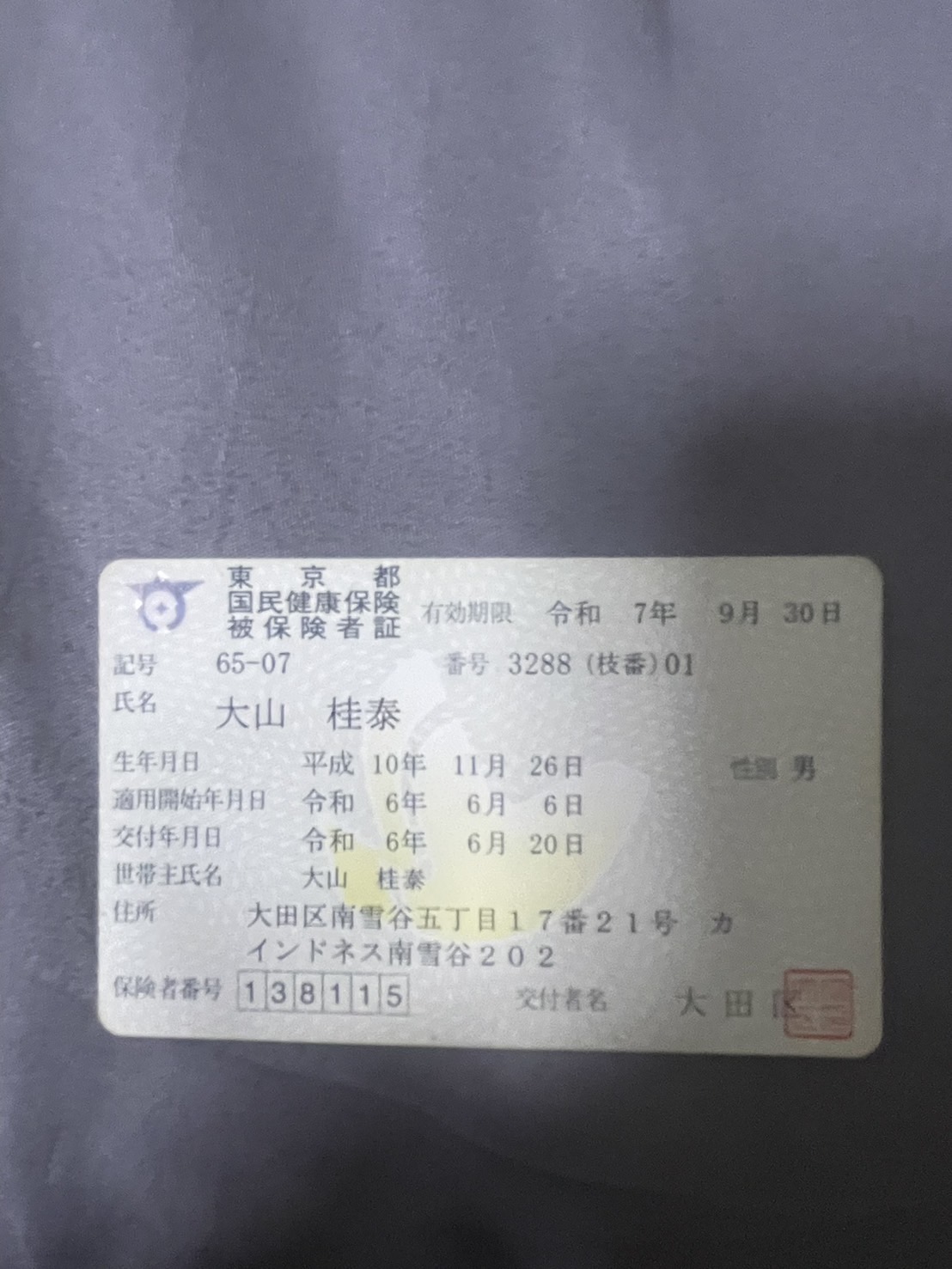 大山桂泰オオヤマケイタ 平成10年11月26日 09059163150 東京都大田区南雪谷5-17-21カインドネス南雪谷202 会社名東京租界 会社電話番号 03-6721-1169