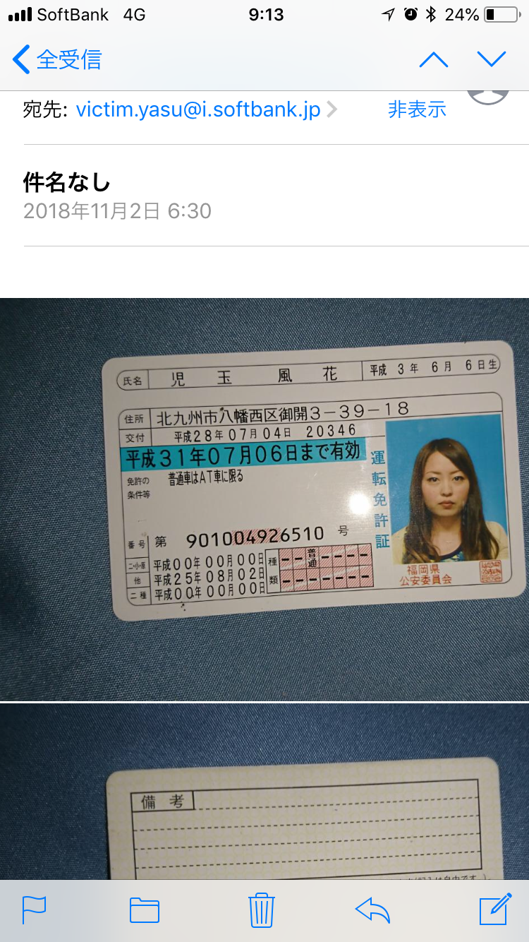 現在の住所は免許証と異なる。